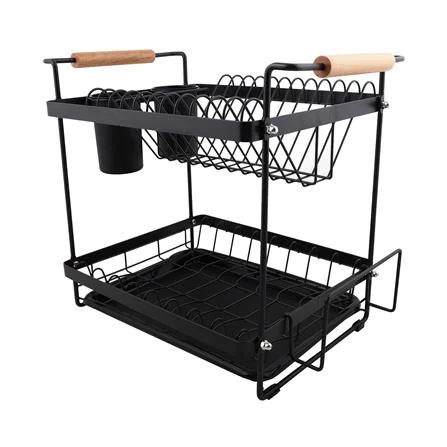 ชั้นคว่ำจาน 2 ชั้น พร้อมถาดรองน้ำและด้ามจับไม้ KECH MODISH สีดำ